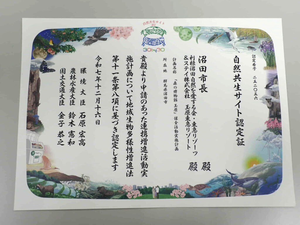 玉原高原は、沼田市・利根沼田自然を愛する会・玉原東急リゾートが申請した玉原高原における連携増進活動実施計画が『森の博物館 玉原』として自然共生サイトに認定されました。